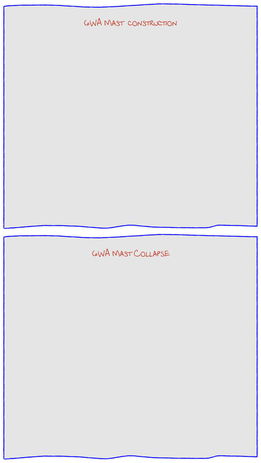 During 1935, work began on the aerial for the radio station 6WA, including a 230m mast and a cooling system. On 25 August 1936, a high wind wrecked the top section of the mast and 210m of it crashed to the ground.